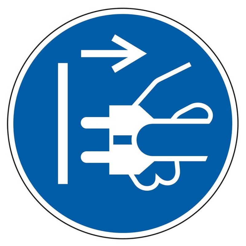 Stekker uit stopcontact halen verplicht sticker, ISO 7010, M006